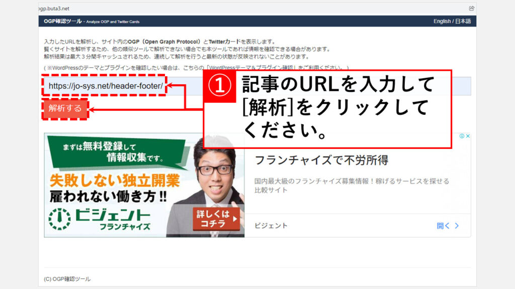 OGP 確認工具 – 分析 OGP 和 Twitter 卡請訪問並輸入您的博客文章的 URL。
