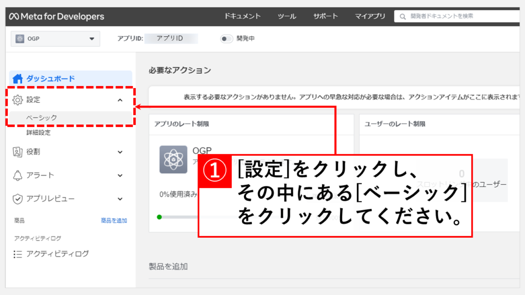 首先,從Meta for Developers(FACEBOOK for Developers)獲取OGP設置所必需的應用程序ID。