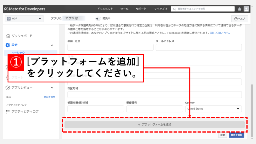 通過創建應用程序獲取OGP設置所需的應用程序ID。