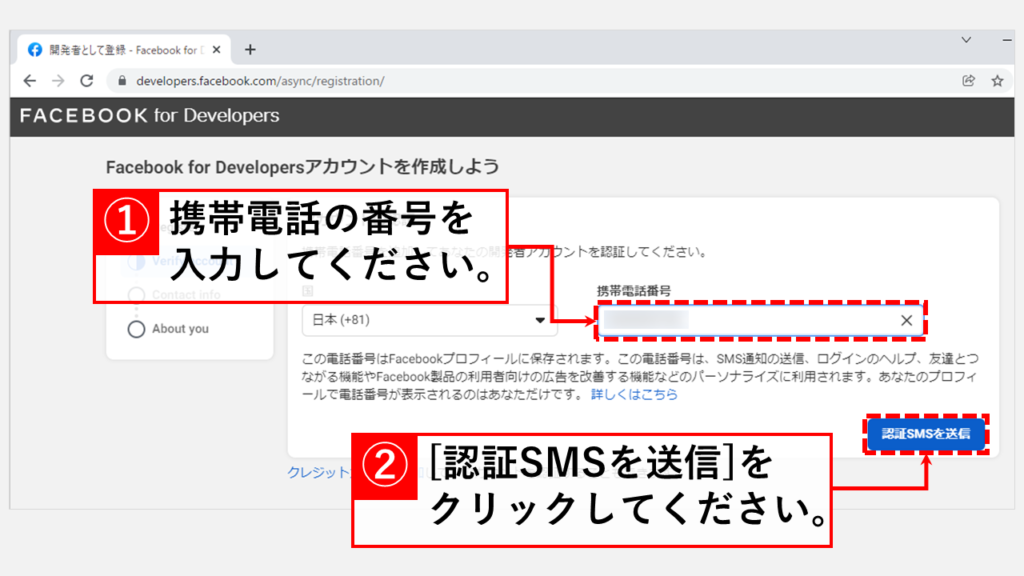 此處將發送一條短信,因此請輸入您的手機號碼。如果號碼從 080 開始,則輸入 80XXXXXXXX,前導不帶 0。