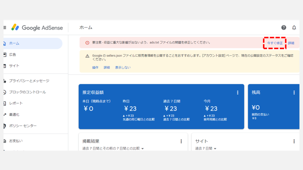 激活 Google AdSense 後,當您訪問 Google AdSense 網站時,注意 – 請修復 ads.txt 文件中的問題,以避免對您的收入產生重大影響。顯示。