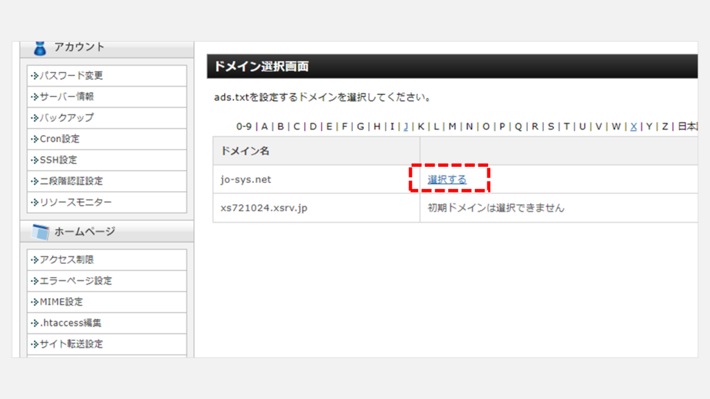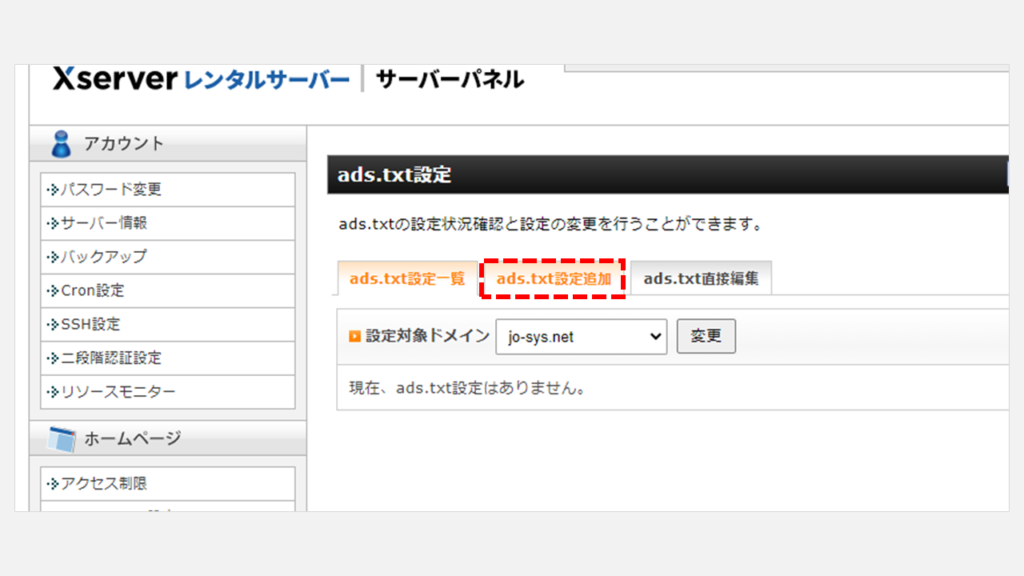 - 在Xserver的服務器面板中打開[ads.txt設置]。