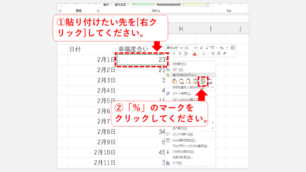 在該菜單的[粘貼選項]中有一個[%]標記,所以點擊它請。