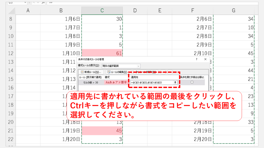 這次要復制的範圍將添加到之前應用的範圍“$C$3:$C$22”的末尾,從而擴大了其應用範圍。