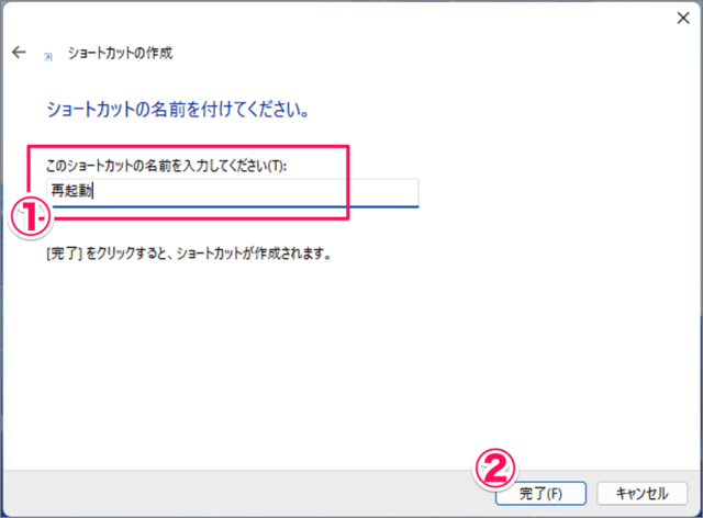 現在已創建[重新啟動]快捷方式。
