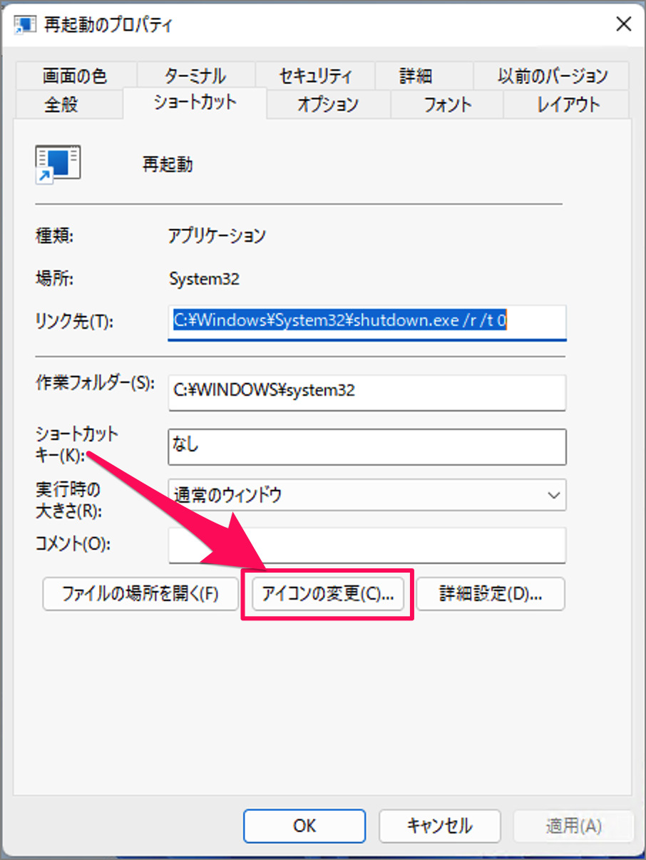[重新啟動] 讓我們更改快捷方式圖標。