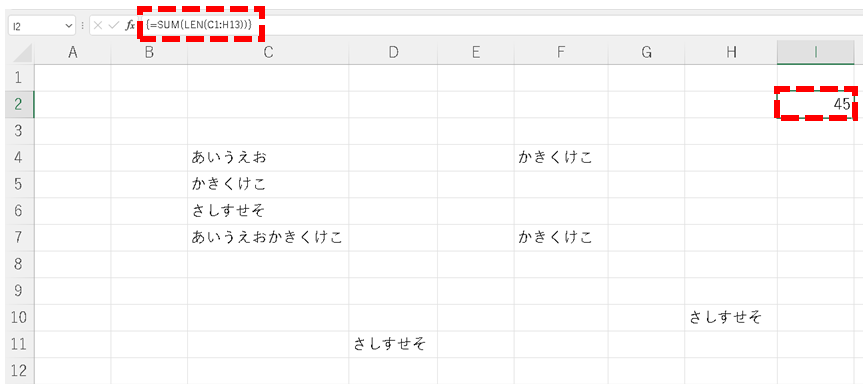 這是通過計算從 C1 到 H13 的字符數並將它們相加來計算的。