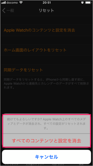 我可以繼續嗎? Apple Watch 上的所有媒體和數據都將被刪除,所有設置也將被重置。