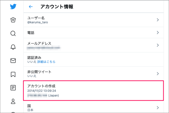 然後將顯示您帳戶中註冊的 Twitter 數據。您可以從“創建帳戶”中查看 Twitter 帳戶的創建日期和時間。