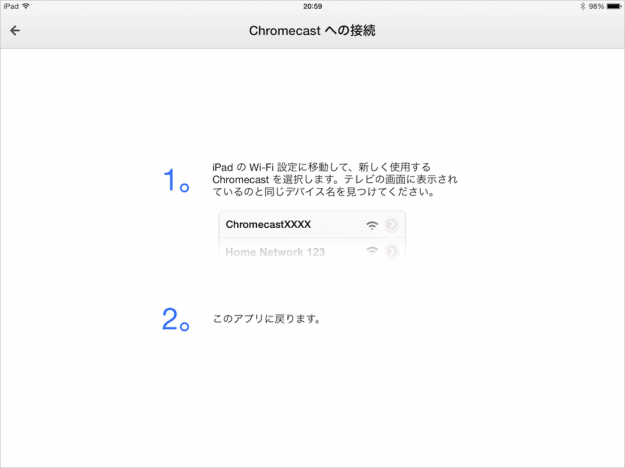 以這種方式確認與Chromecast的連接後,返回到應用程序“Chromecast”。