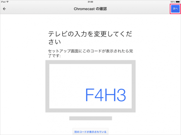 輸入您的電視,確保顯示相同的代碼,如果相同,請點擊右上角的“下一步”。