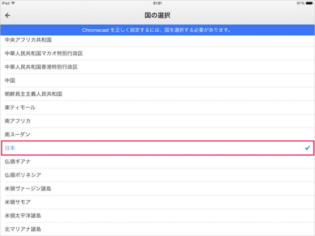 這是一個國家的選擇。點擊您的國家/地區。在這裡我們點擊“日本”。