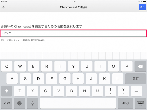 輸入名稱以識別您的 Chromecast,然後點擊屏幕右上角的“下一步”。