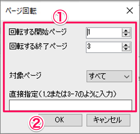 ① 指定要旋轉的頁面,然後單擊“確定”。