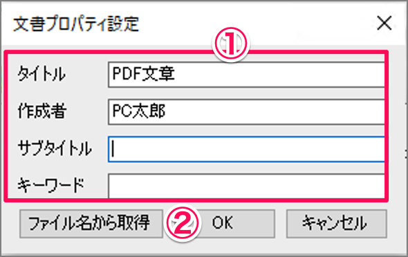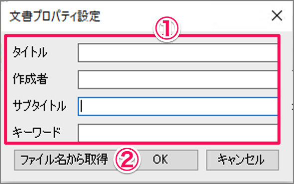 如果不需要,請刪除“標題”、“作者”、“副標題”和“關鍵字”,然後單擊②“確定”。