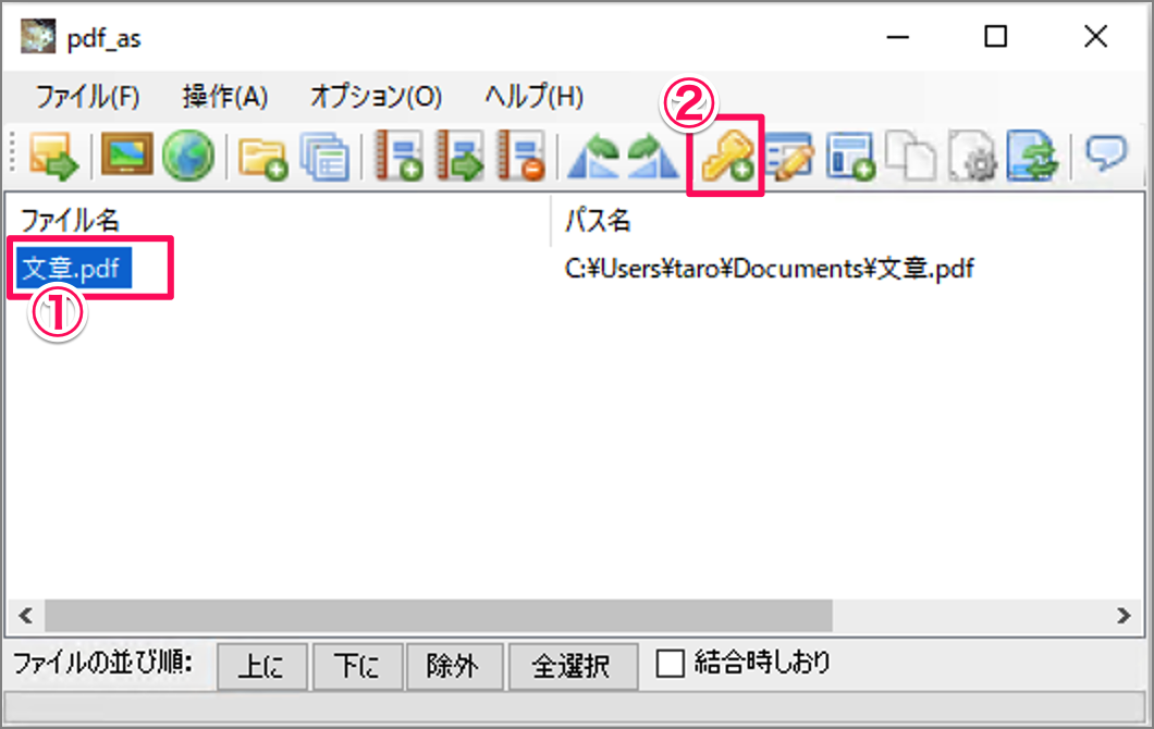 啟動 pdf_as 並拖放要為其設置密碼的 PDF 文件。