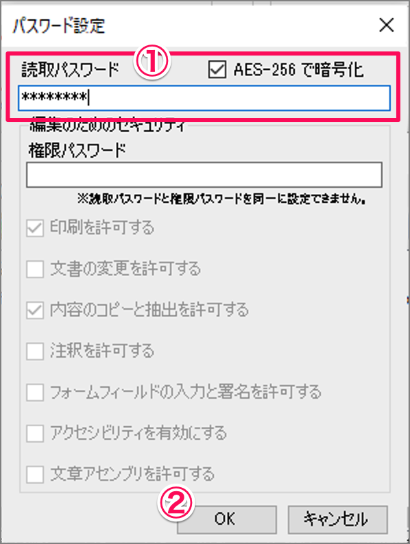 ① 輸入“讀取密碼”,然後點擊②“確定”。