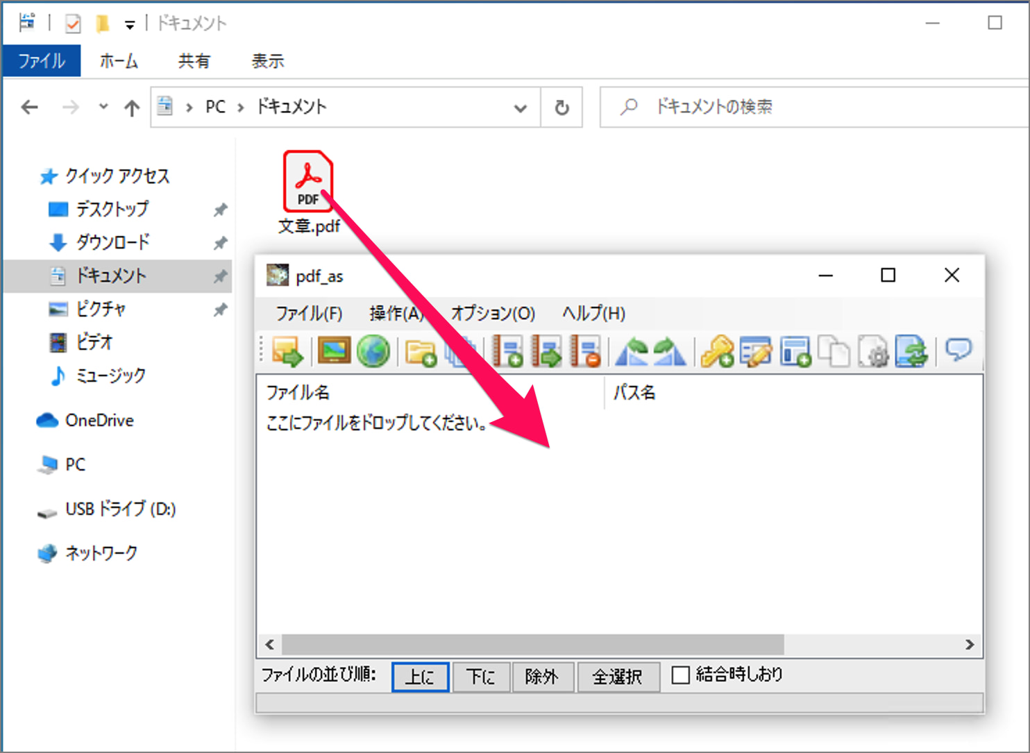 啟動 pdf_as 並拖放要旋轉的 PDF 文件。