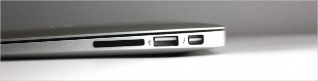 在 MacBook 右側的“SDXC 卡”插槽中(此處為 Air 13 英寸,2014 年初)