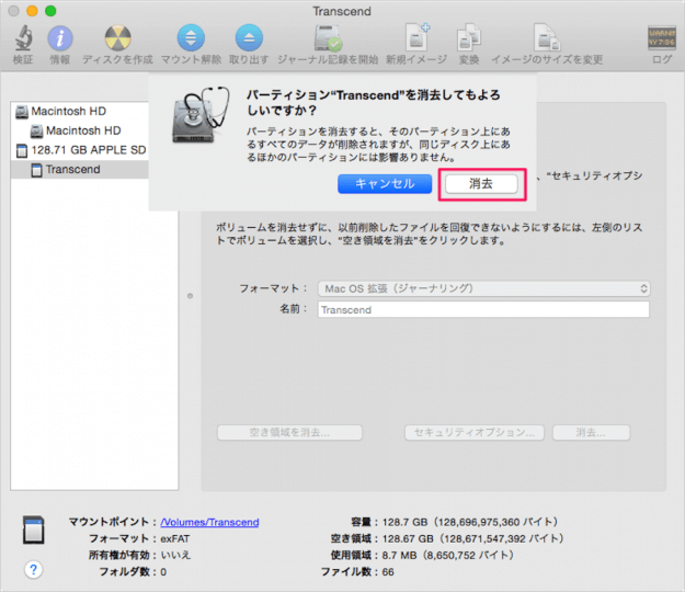 將出現一個彈出窗口,詢問“您確定要刪除分區“Transcend”嗎?”,因此單擊“刪除”。