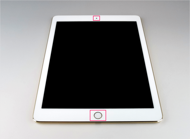 顯示屏上方有一個“面部攝像頭”,下方有一個“主頁按鈕/觸摸 ID 傳感器”。