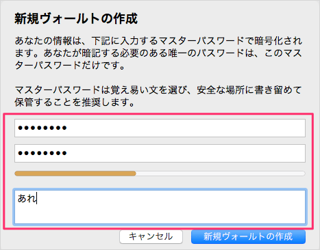 輸入您的主密碼和提示,然後單擊“創建新保管庫”。