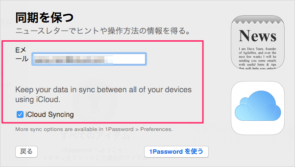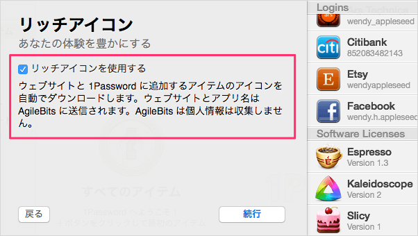 在這裡,您將對已安裝的應用程序“1Password”進行初始設置(例如設置主密碼)。