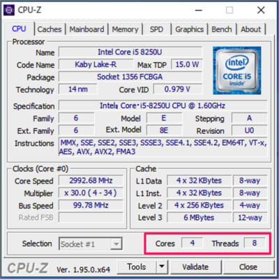 您可以使用“CPU-Z”應用程序檢查CPU的核心數和線程數。