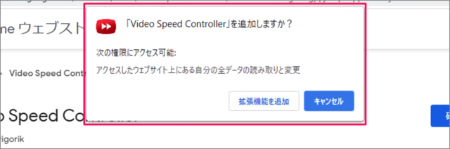 將出現一個彈出窗口,詢問“您要添加視頻速度控制器嗎?”單擊“添加擴展”。
