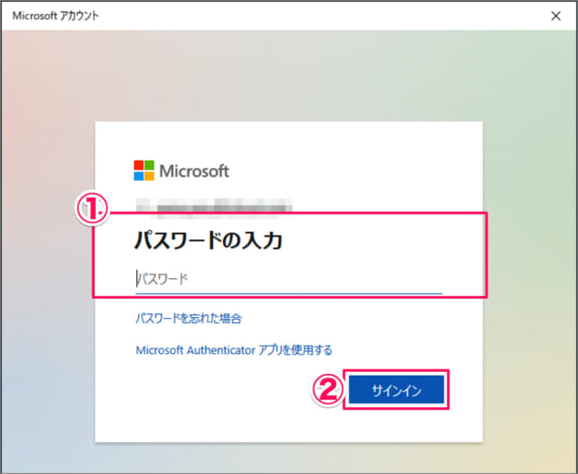 ① 輸入您的Microsoft帳戶(用戶帳戶)的“密碼”。