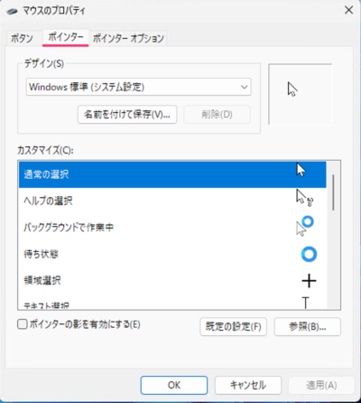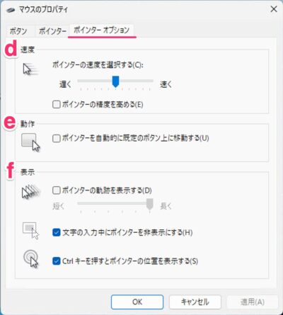 設置指針軌跡、輸入字符時的指針顯示以及指針位置。