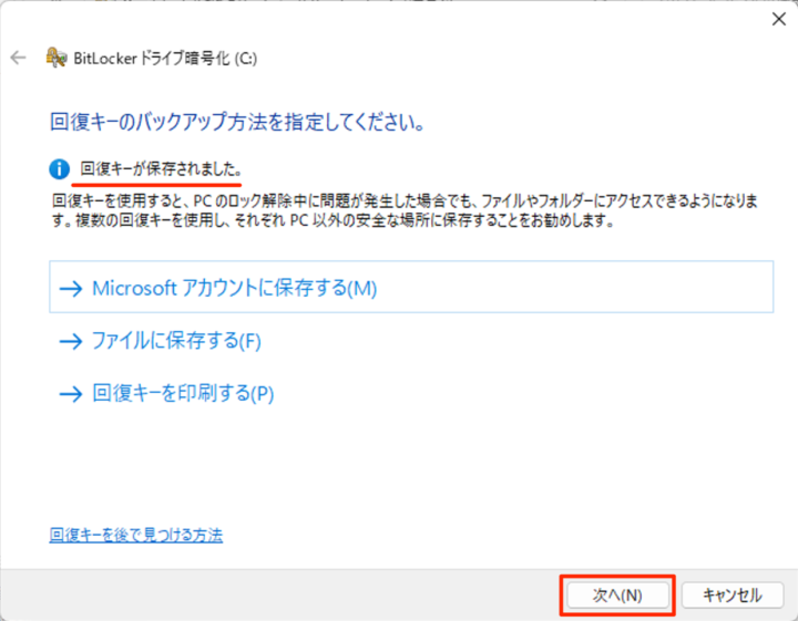 保存恢復密鑰後,單擊“下一步”。