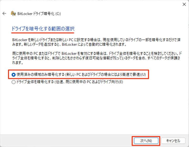 選擇您想要加密驅動器的程度,然後單擊“下一步”。