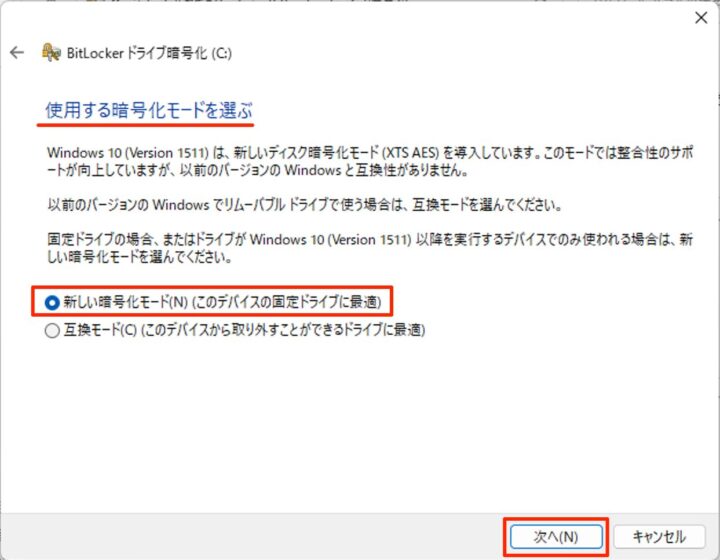 選擇您要使用的加密模式,然後單擊“下一步”。