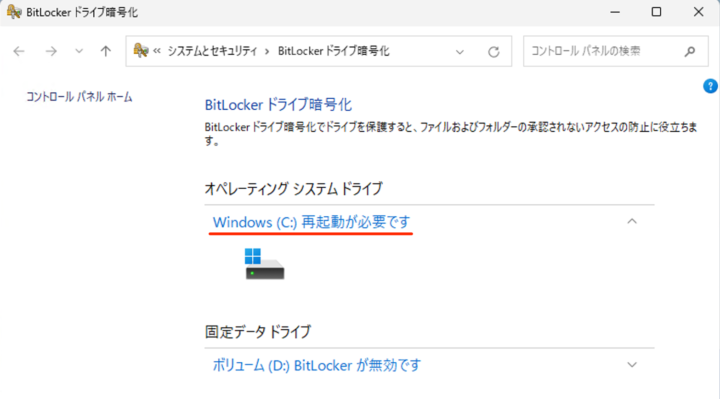 重新啟動後,BitLocker 加密將開始(加密正在進行中)。
