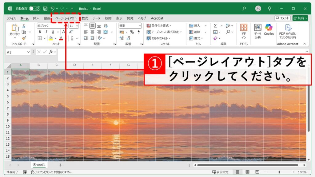 從這裡開始,我們將說明如何使用實際屏幕將計算機上的圖像文件用作 Excel 中的背景。